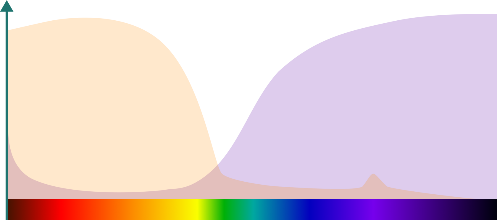 *Границы эффективности применения определенной длинны волны в зависимости от цвета пигмента